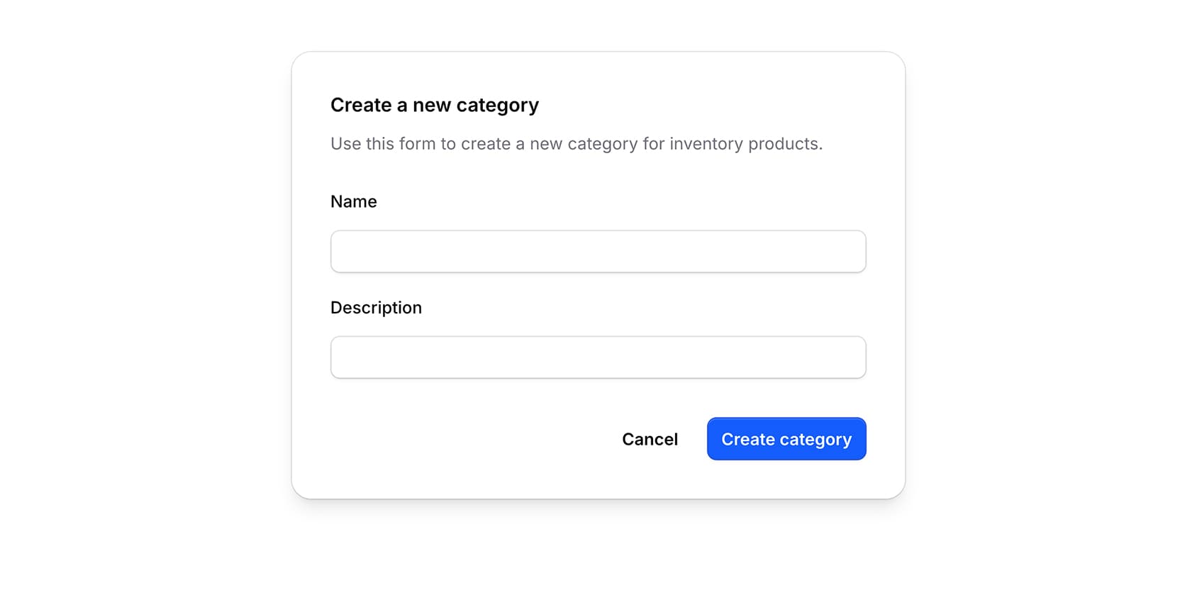 Quickly add new categories for your inventory items when creating new items. Categories help organize your inventory and make it easier to find items.